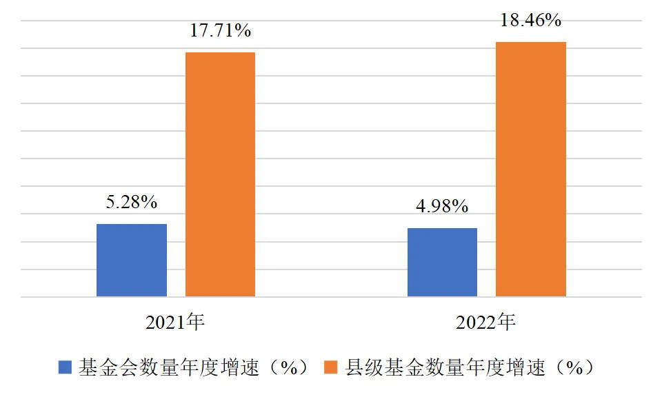 圖2 2020-2022年縣級基金會數(shù)量年度增速超過基金會整體2